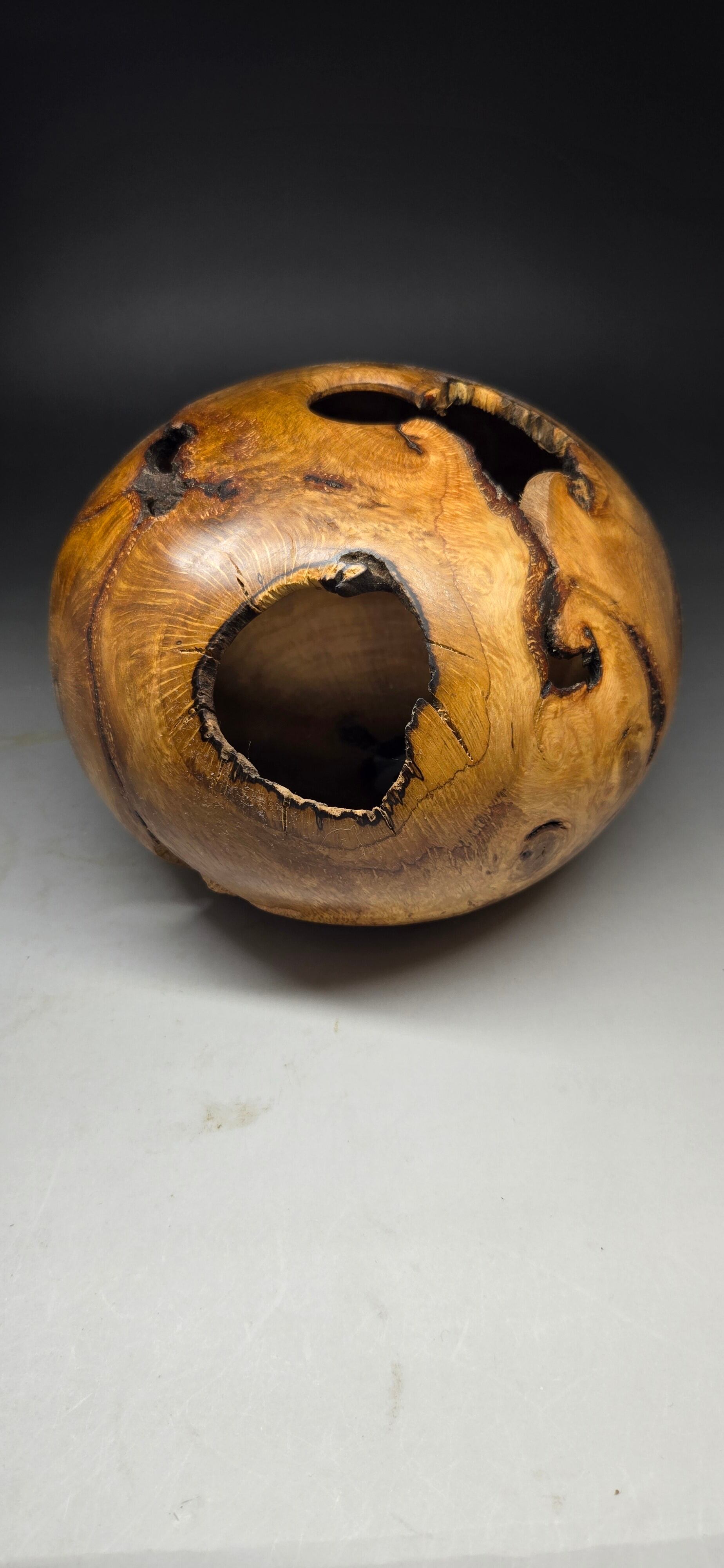 内側はドリルで穴をあけた物ではなく、削り出して壁を薄く仕上げた作品となっております。