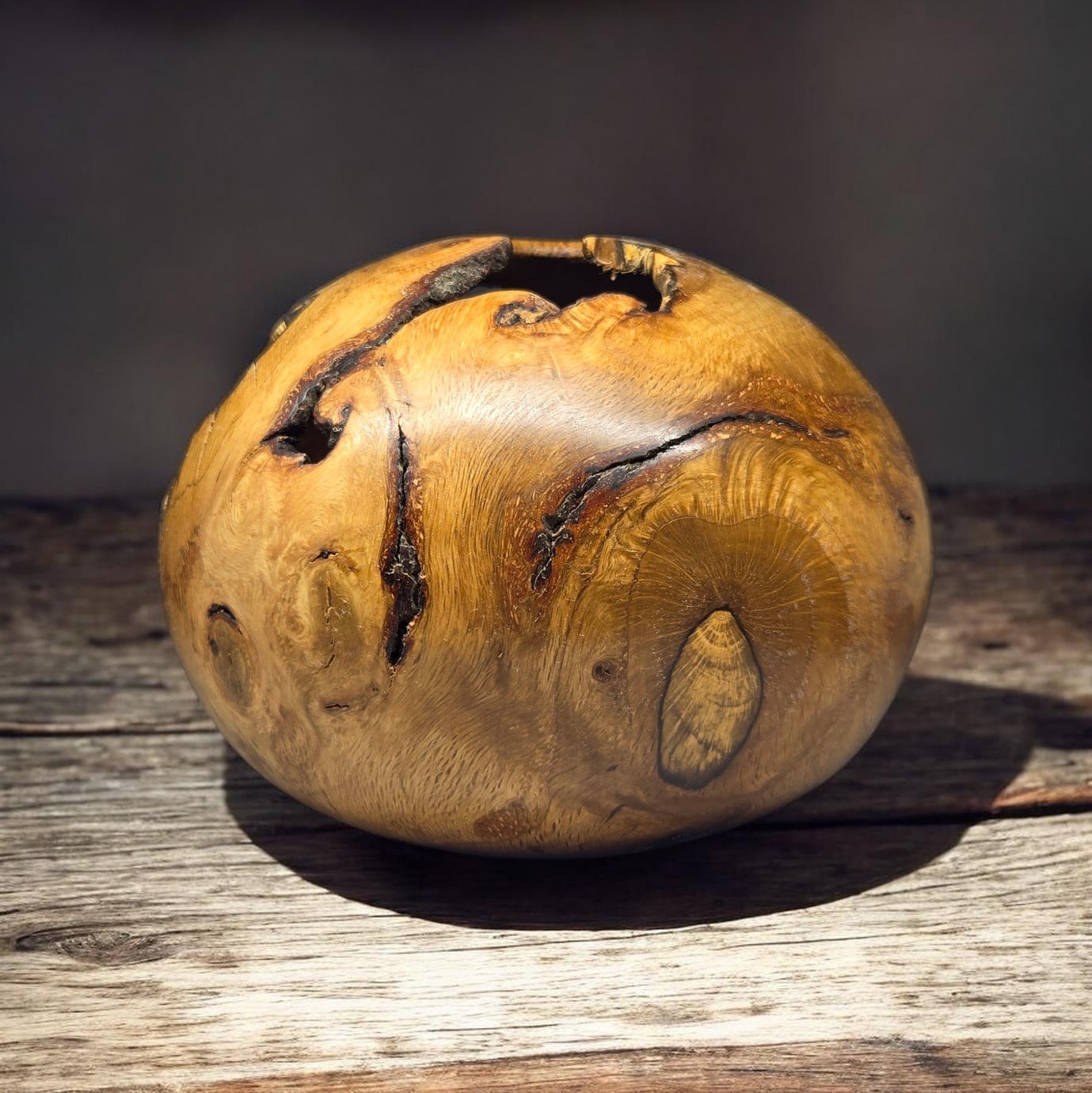 緻密な杢目: 非常に成長が遅い木ゆえの、詰まった緻密な年輪と独特の光沢が、見る角度によって深い陰影を生み出します。