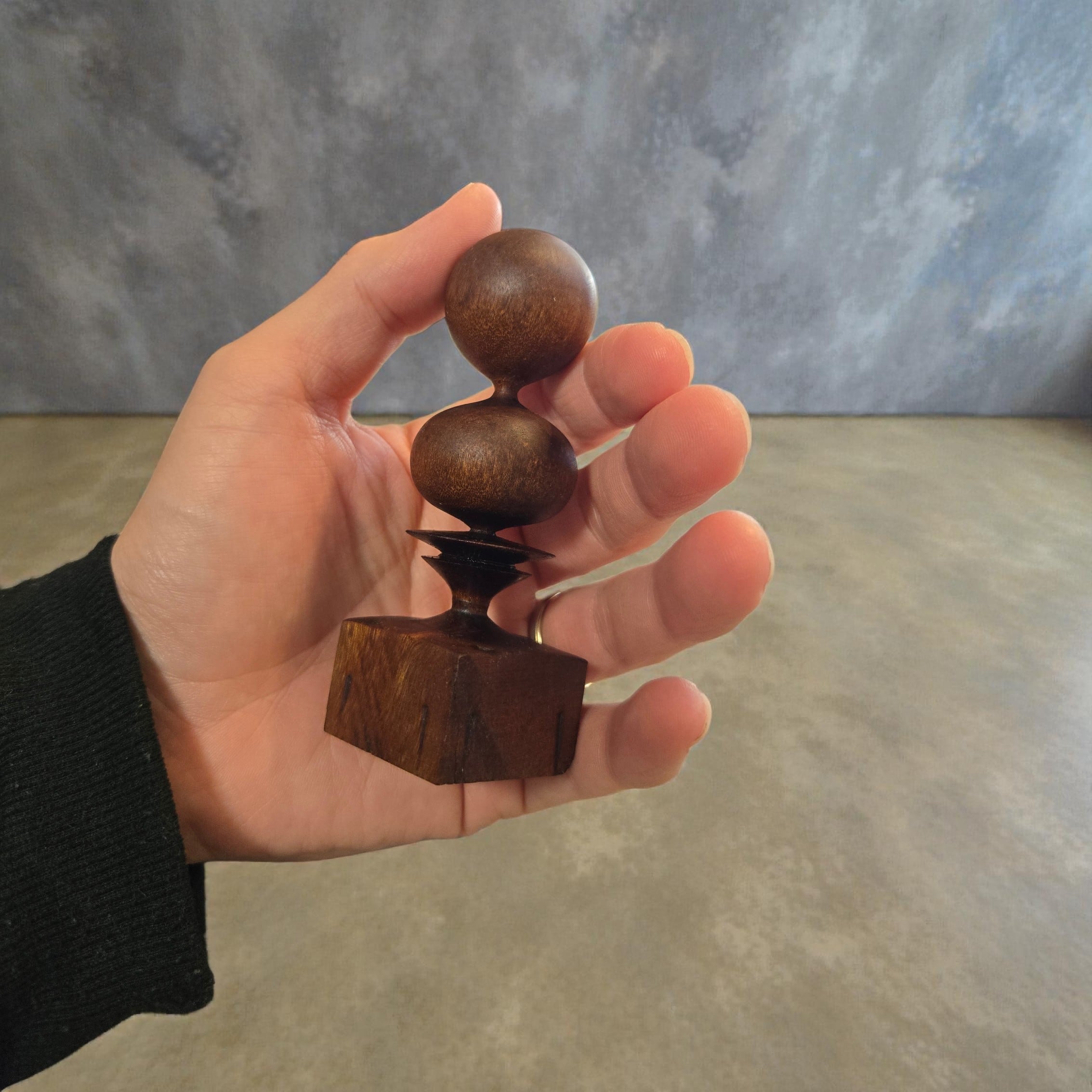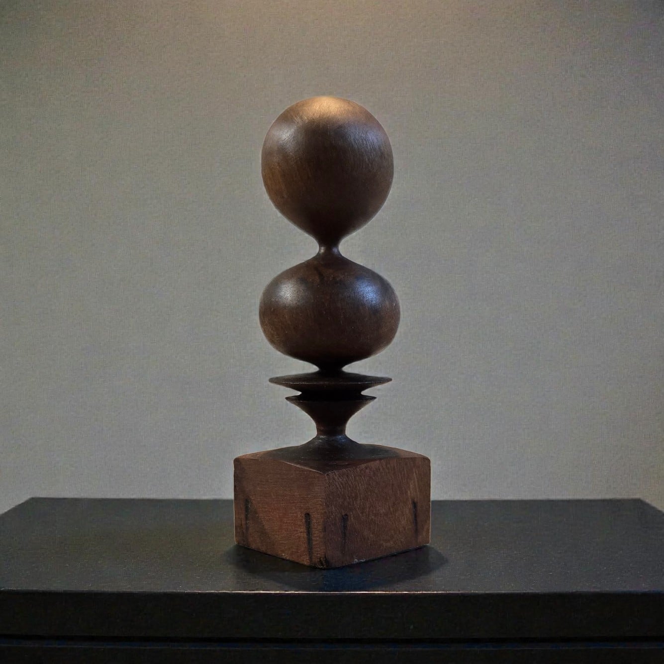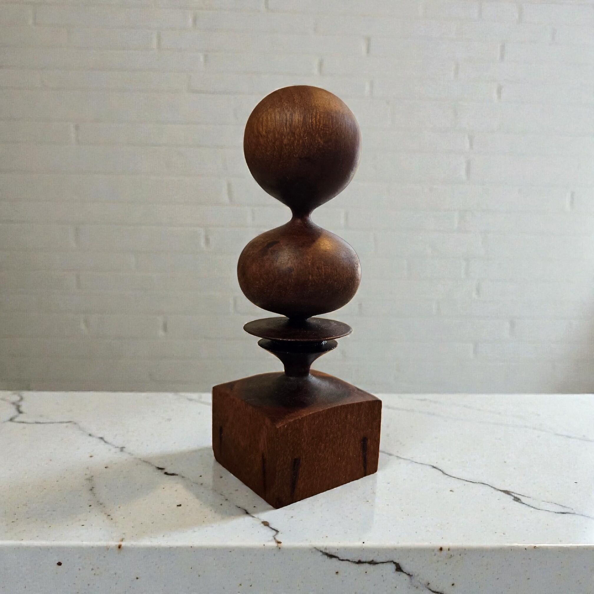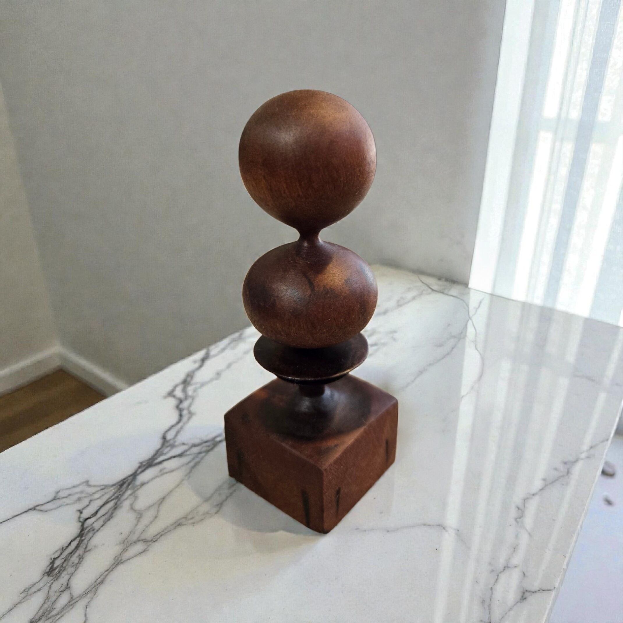 ウォールナットの無垢材を、一つひとつ丁寧にろくろ(ウッドターニング)で削り出した一点物のオブジェです。