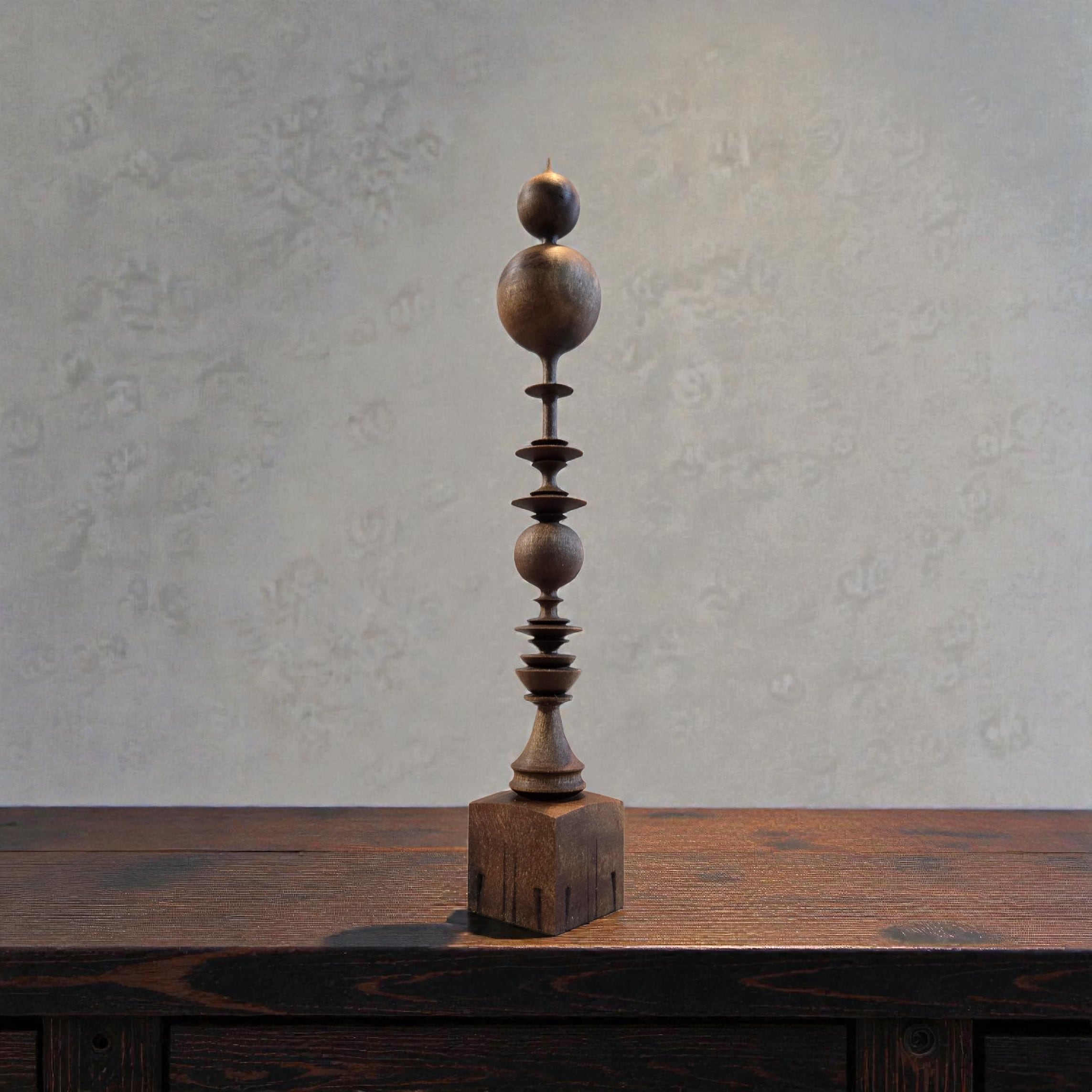 木工ろくろによる極細工 ウォールナットのオブジェ/ 挽き物細工1点物