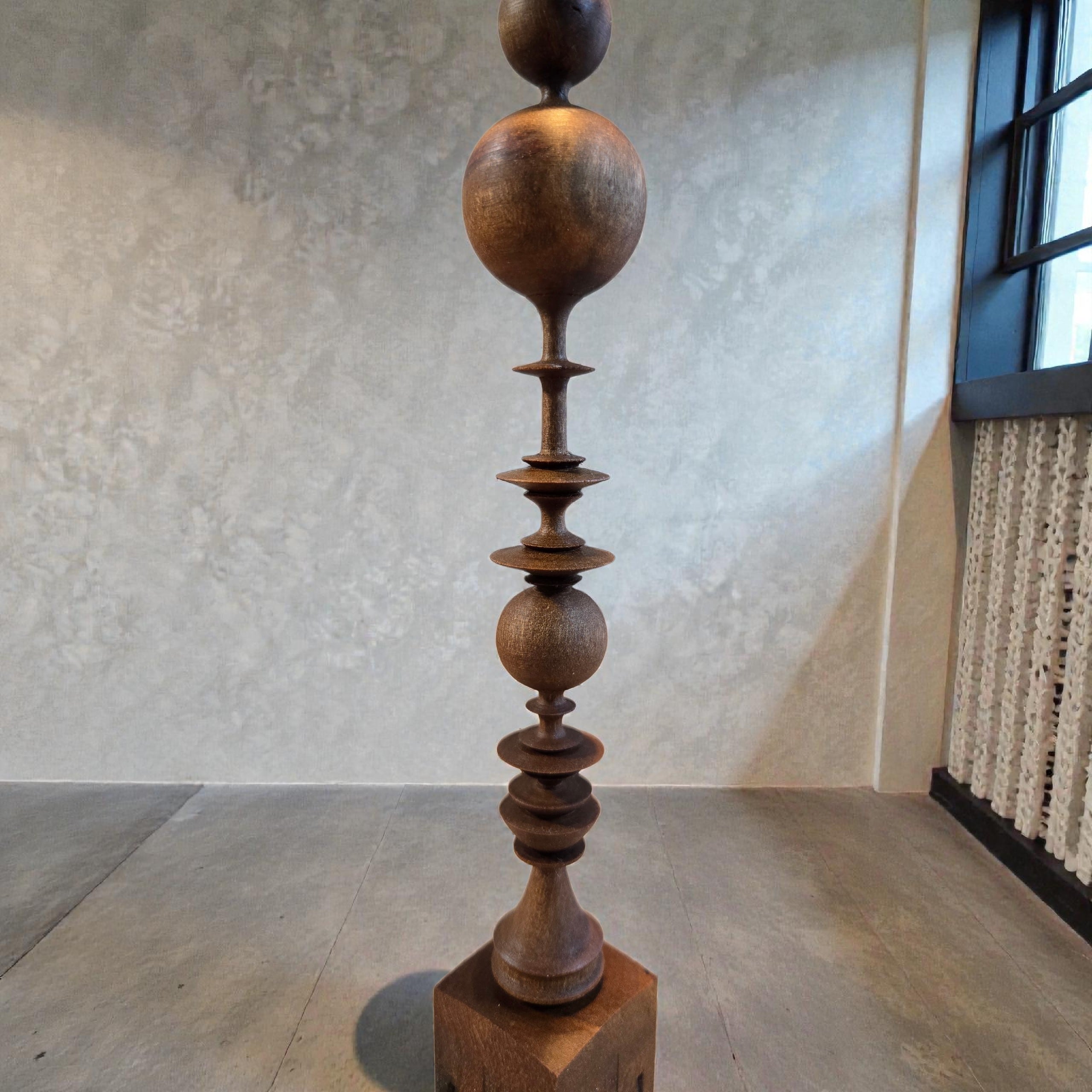 世界三大銘木の一つである「ウォールナット」を贅沢に使用し、木工旋盤で一つひとつ丁寧に削り出した、一点物の木製オブジェです。