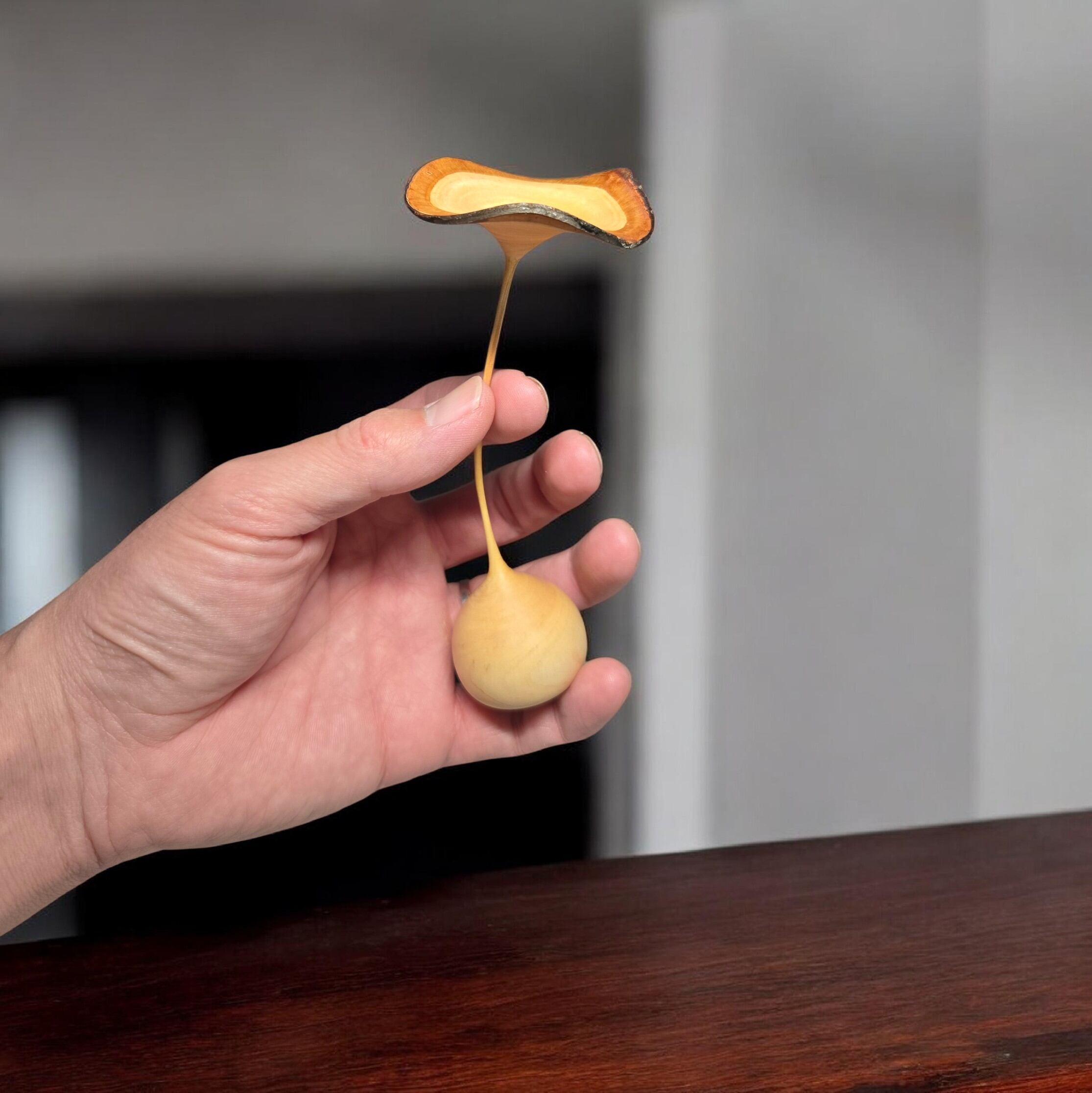 計算された偶然: 乾燥による変形を予測しながら削り出す高度な技術により、繊細なバランスと力強さが共存しています。
