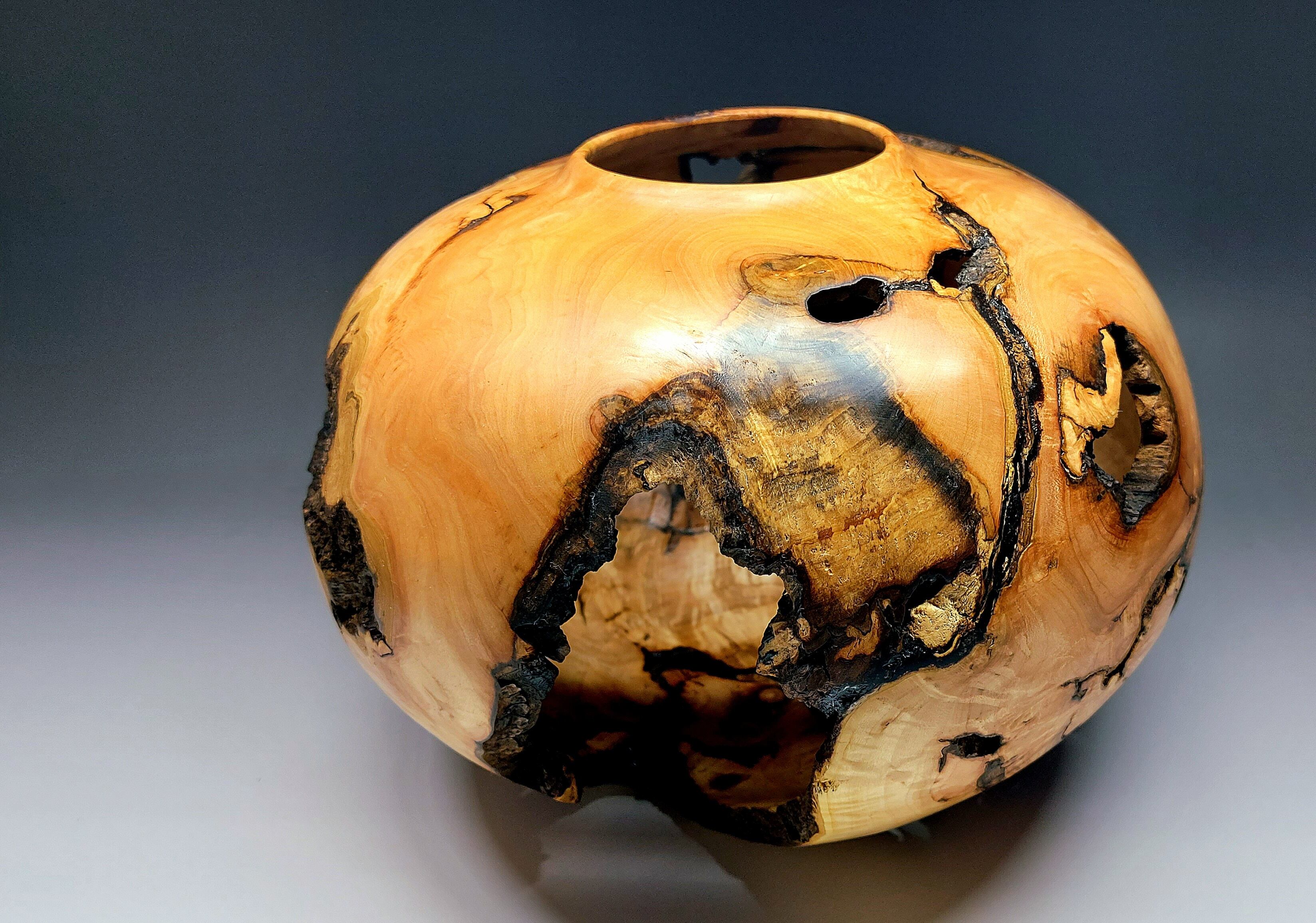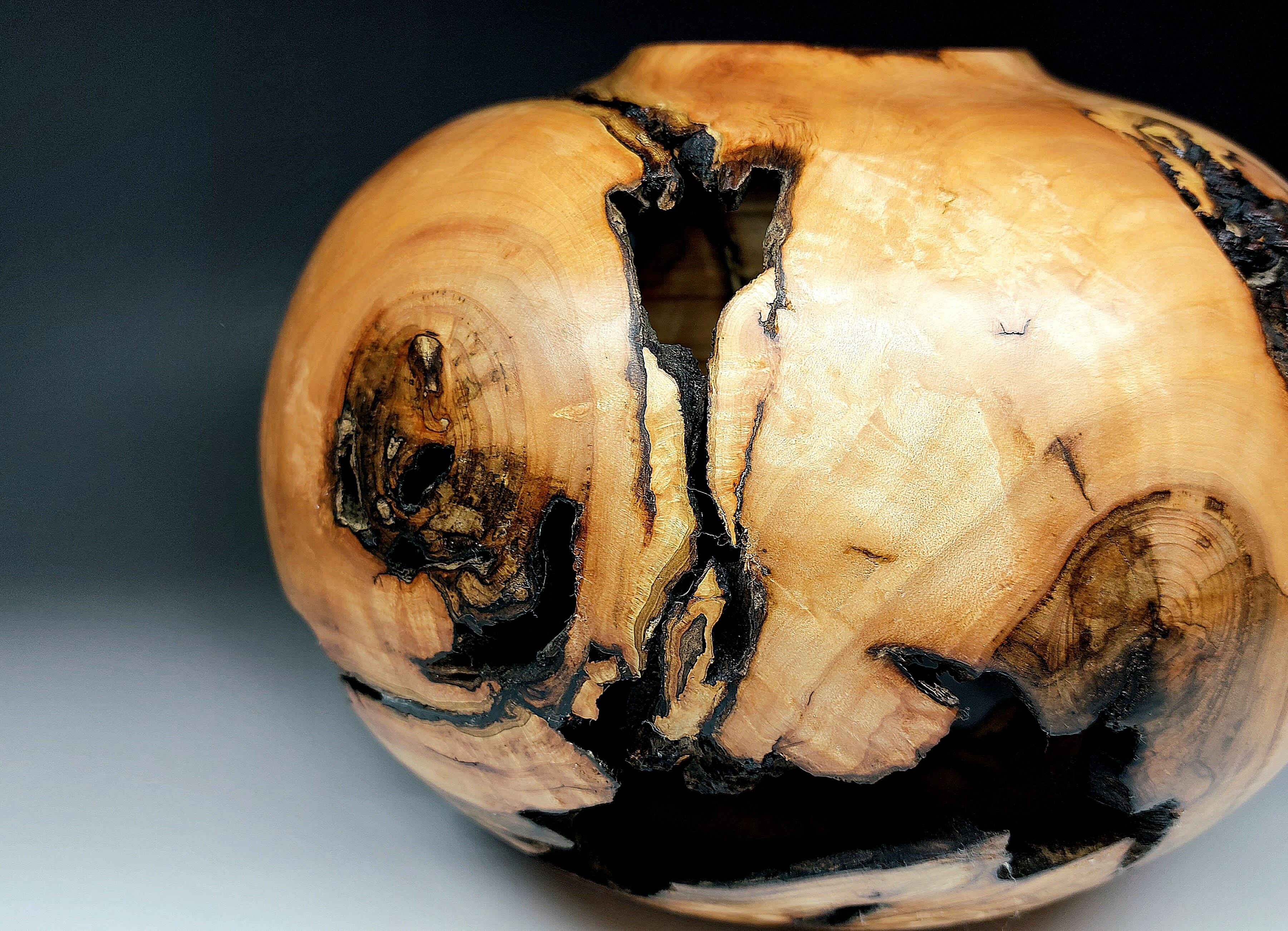 メープルの株元から削りだした穴あきの壺です。