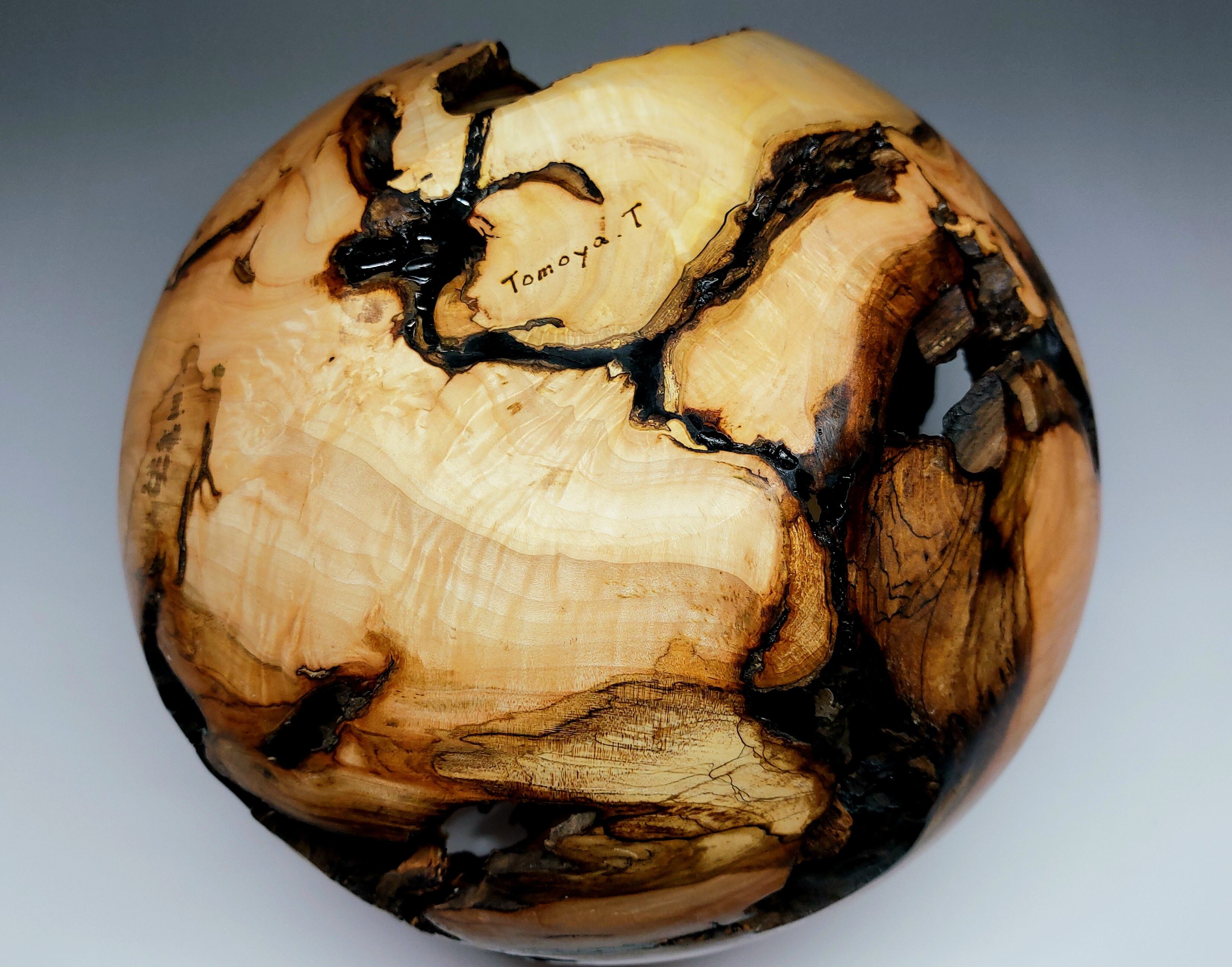 【YamabikoWoodArt 】 特大 穴あきの壺 一点物 木製 メープル 制作動画有り