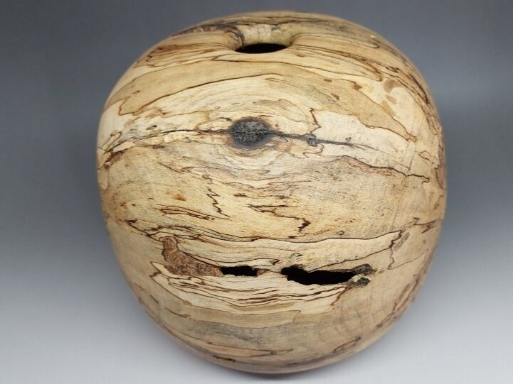 こちらはスポルテッド柄の木から木工旋盤で削り出した一点物になります。