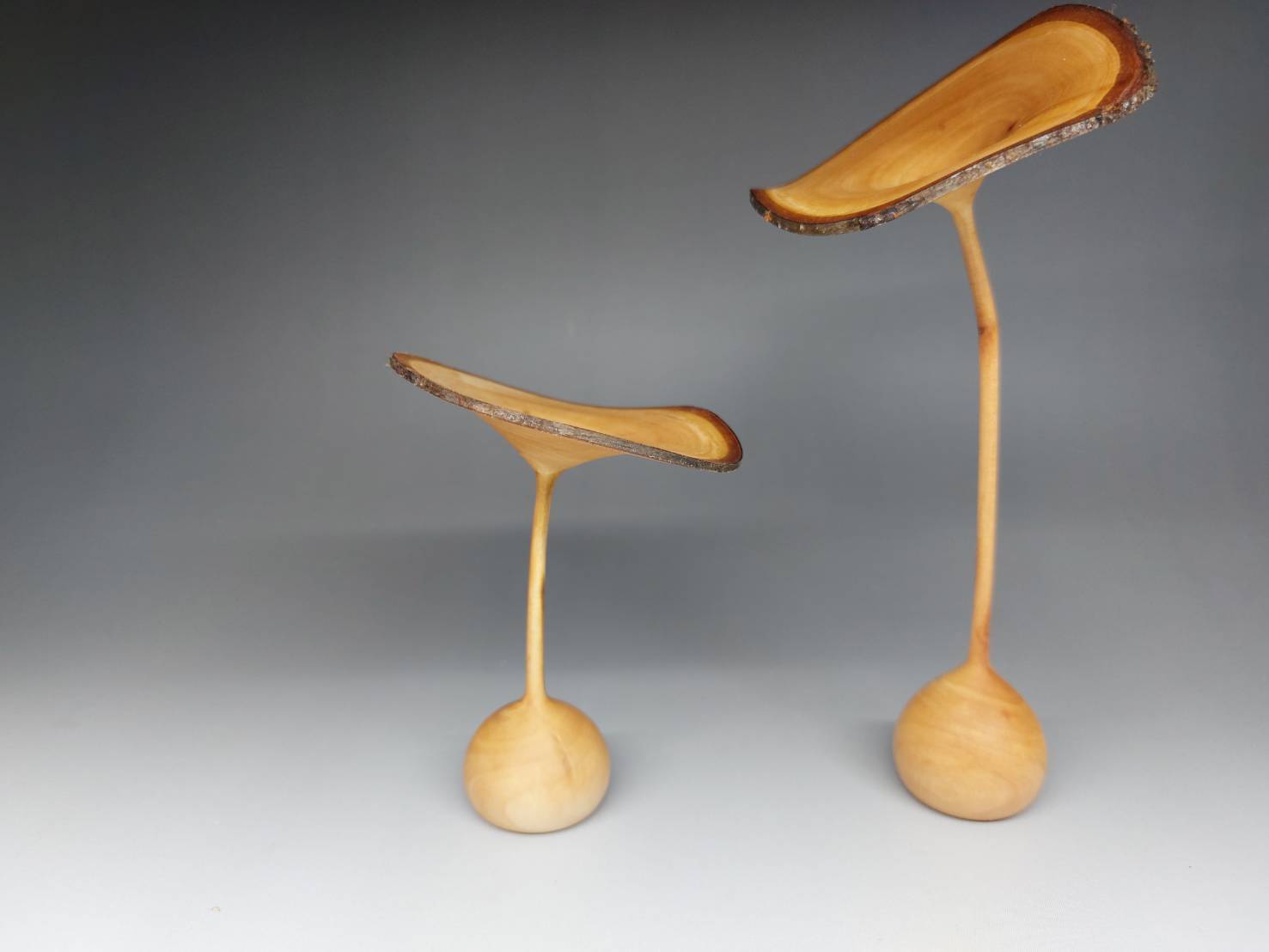生木から削る事で、乾燥によって大きく変形しています。動画にもありますが、同じ枝からでも全く表情の違う作品が生まれます。