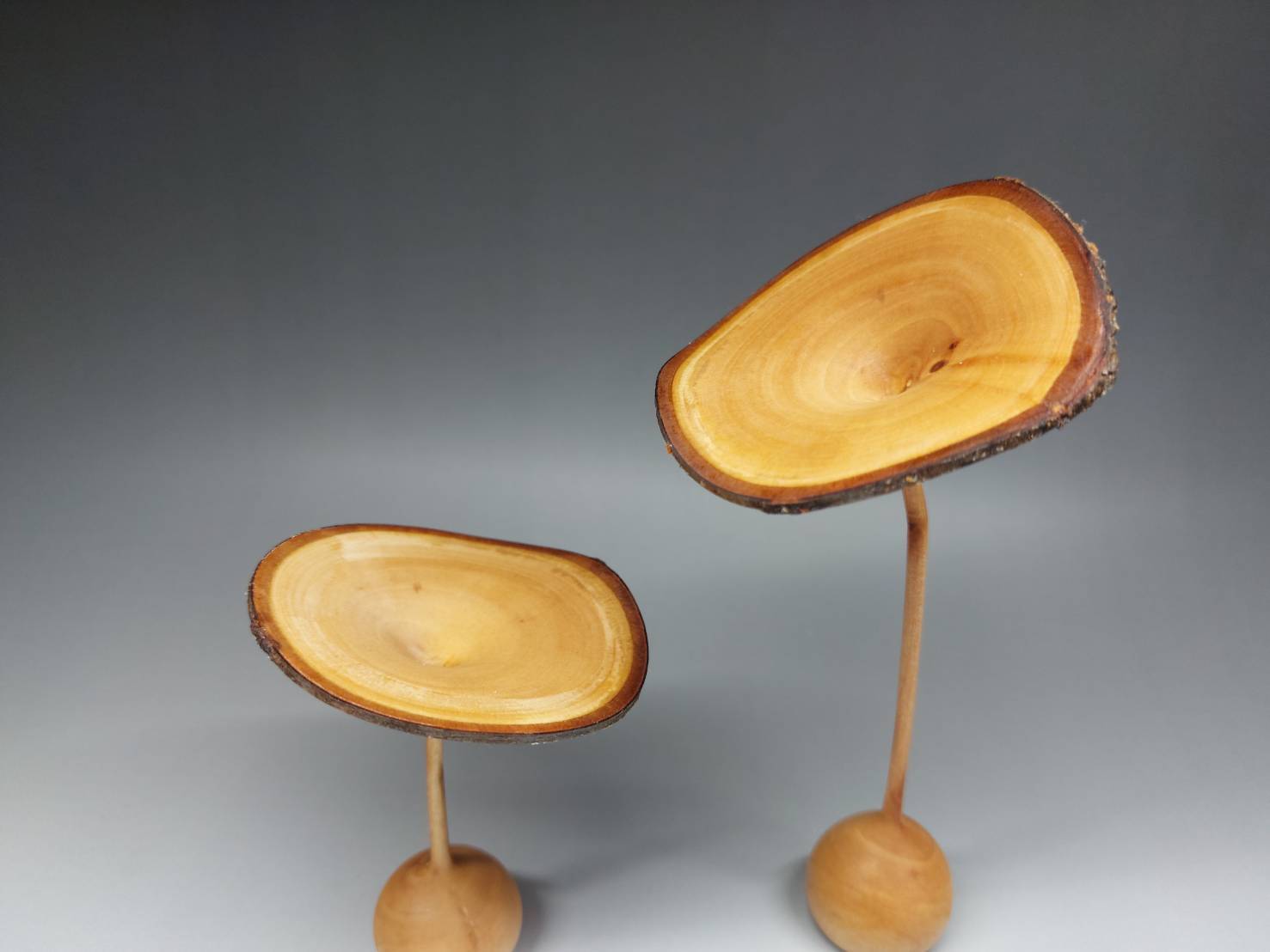 こちらは桜の枝から木工旋盤を使って削り出した一点物になります。