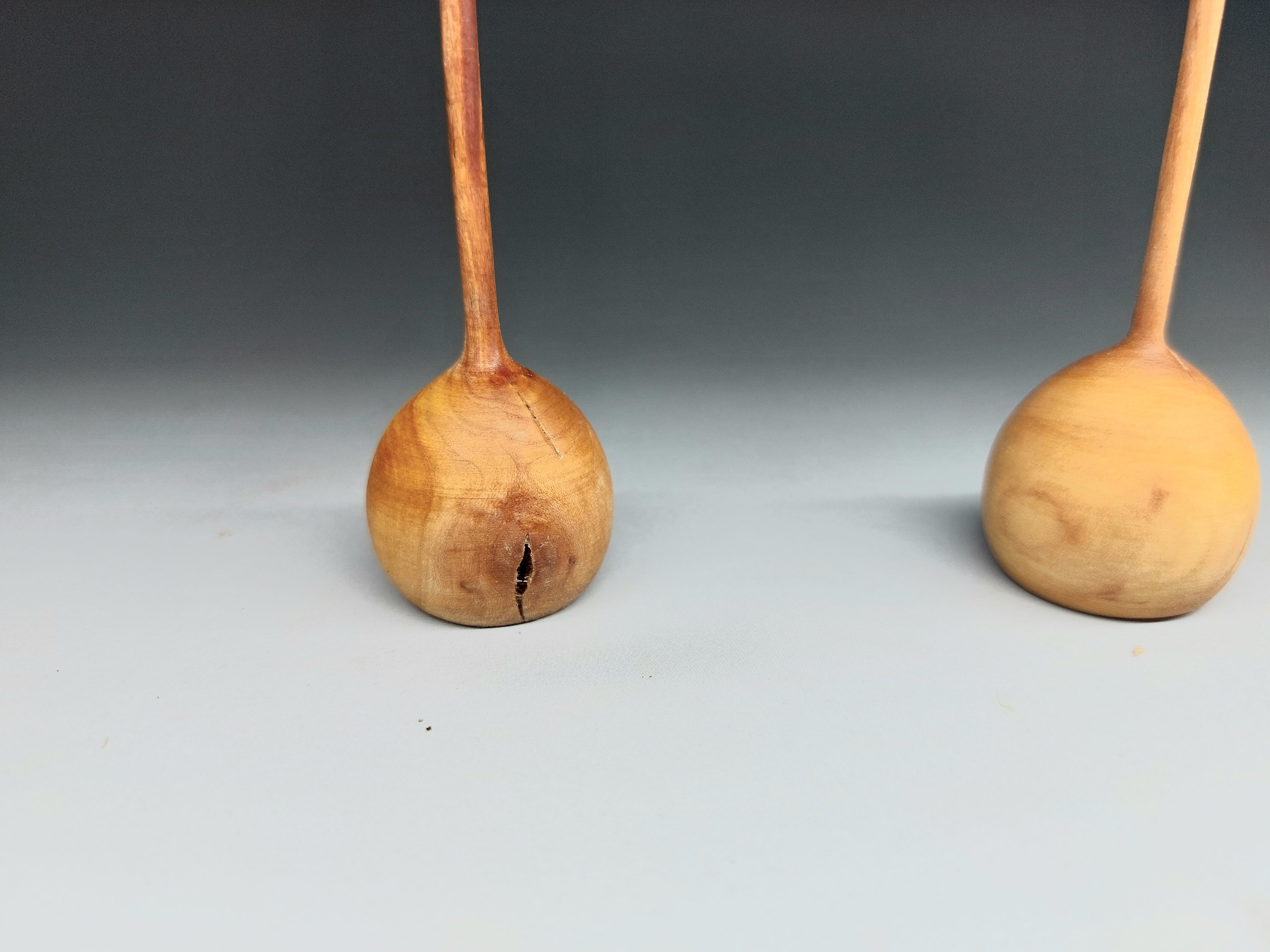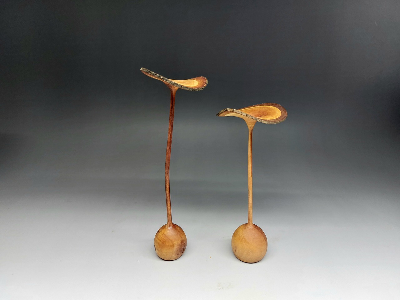 生木から削る事で、乾燥によって大きく変形しています。動画にもありますが、同じ枝からでも全く表情の違う作品が生まれます。