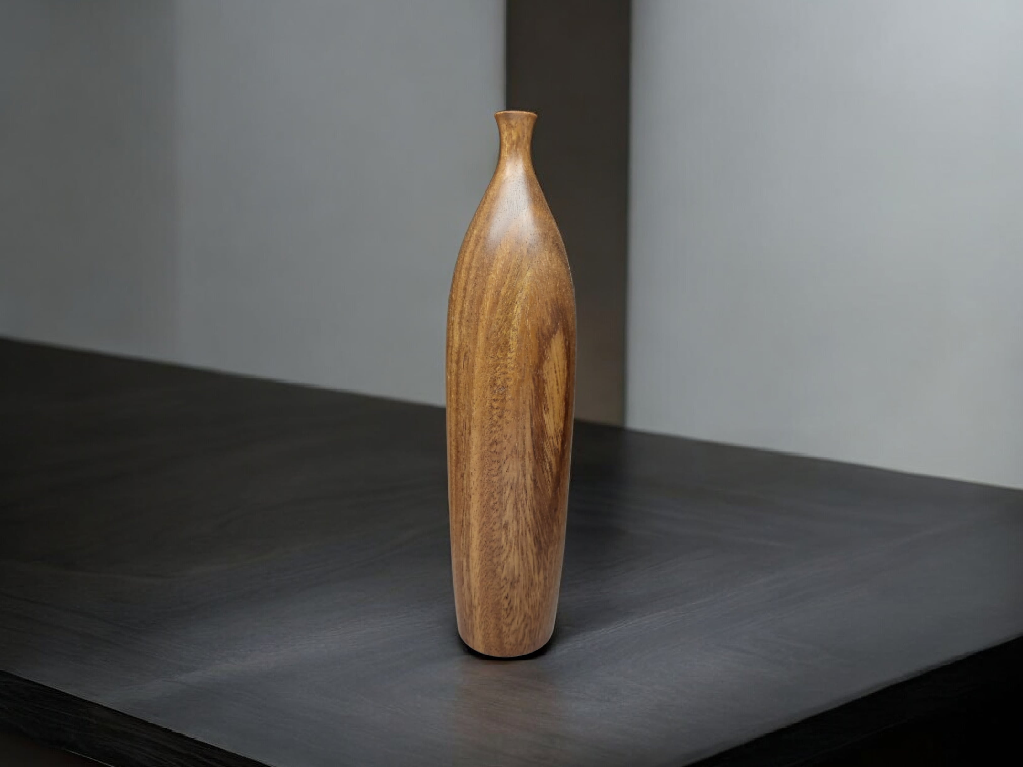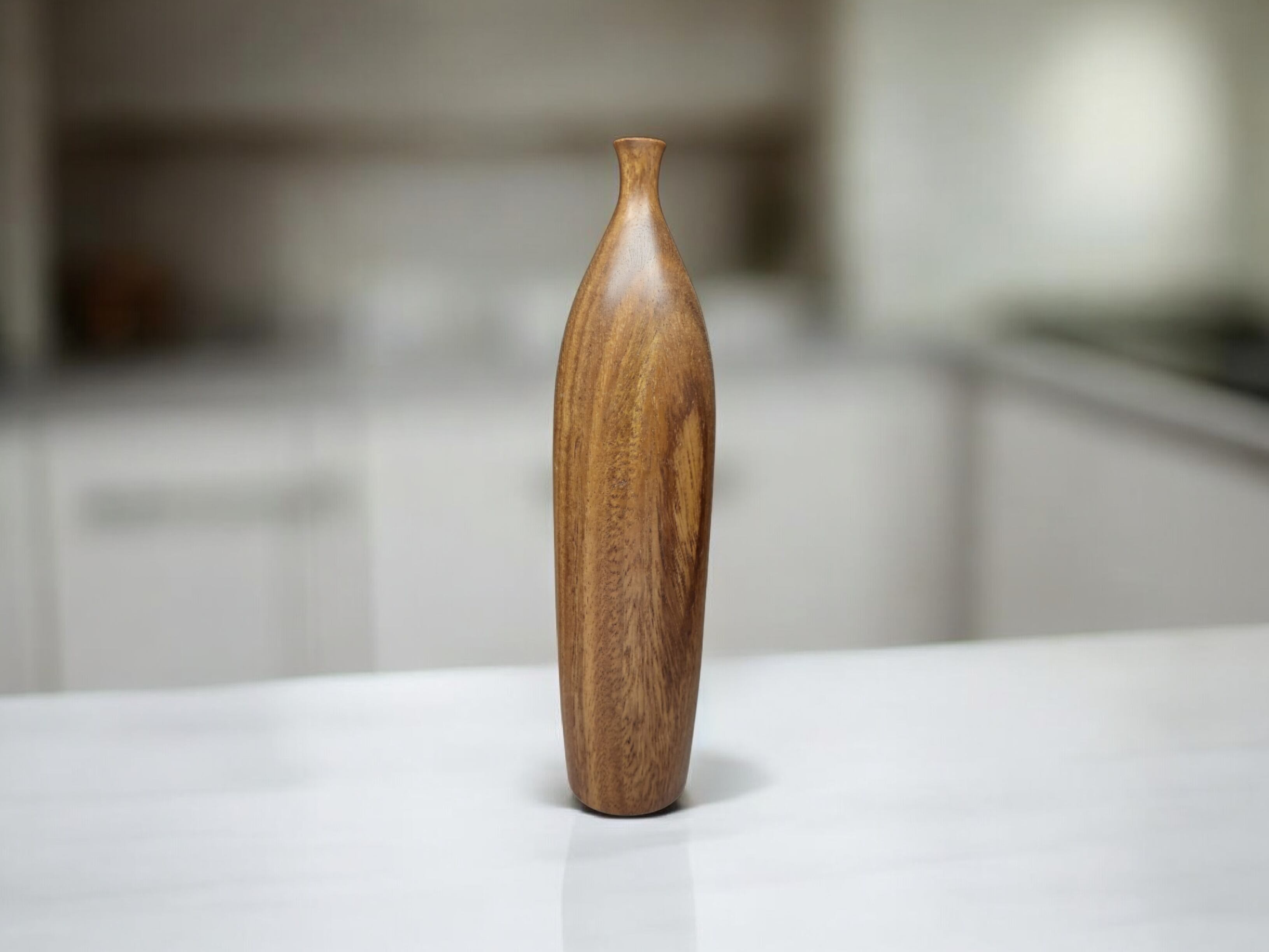 希少な天然木「モンキーポッド」の無垢材を贅沢に使用した、高さ25cmの大型一輪挿し・オブジェです。